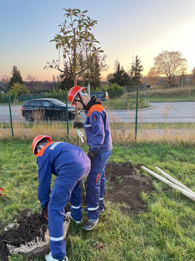 Am Freitag, den 7. November 2025, setzten die Jugendfeuerwehr Ribbeck, das Umweltamt des Landkreises Havelland und die Schlossverwaltung Ribbeck gemeinsam ein Zeichen für den Klimaschutz – mit der Pflanzung von 19 Obstbäumen neben dem Parkplatz am Schloss. Bei der Auswahl der Sorten wurde besonders auf regionale Arten geachtet – im Sinne einer gesunden Ernährung, nachhaltigen Bewirtschaftung und des Erhalts alter Obstsorten.