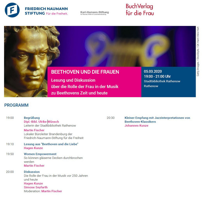 Wir freuen uns auf eine spannende Diskussion mit Ihnen und laden Sie im Anschluss herzlich zu einem kleinen Empfang mit Jazzinterpretationen von Beethoven-Klassikern ein.