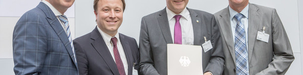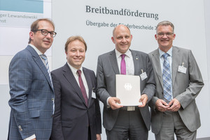 Amtierender Landrat Roger Lewandowski nahm einen Förderbescheid zum Breitbandausbau von Bundesverkehrsminister Alexander Dobrindt entgegen