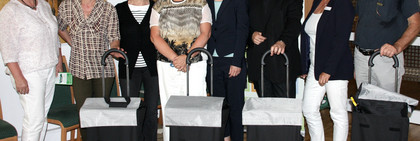 Demografie-Referentin und Sozialdezernent übergeben Musterkoffer mit Alltagshilfen für Senioren an Pflegestützpunkt und Kreisseniorenrat
