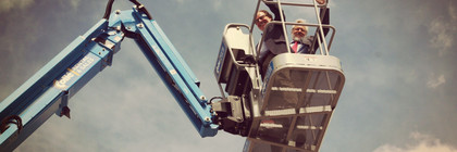 In schwindelerregende Höhe ging es beim Besuch des Unternehmens Collé Rental & Sales im Gewerbegebiet der Gemeinde Brieselang
