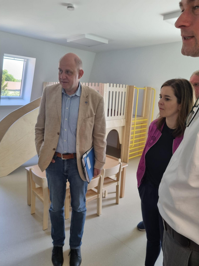 Außerdem besuchte der Landrat Roger Lewandowski die neue Kita „Fuchsbau“, die von dem sozialen und gemeinnützigen Verein ZukunftsChancen Brieselang e.V., zusammen mit privaten Bauherren ins Leben gerufen wurde. Die Kita bietet bis zu 65 Plätze an und hat Anfang Mai ihren Betrieb aufgenommen.
