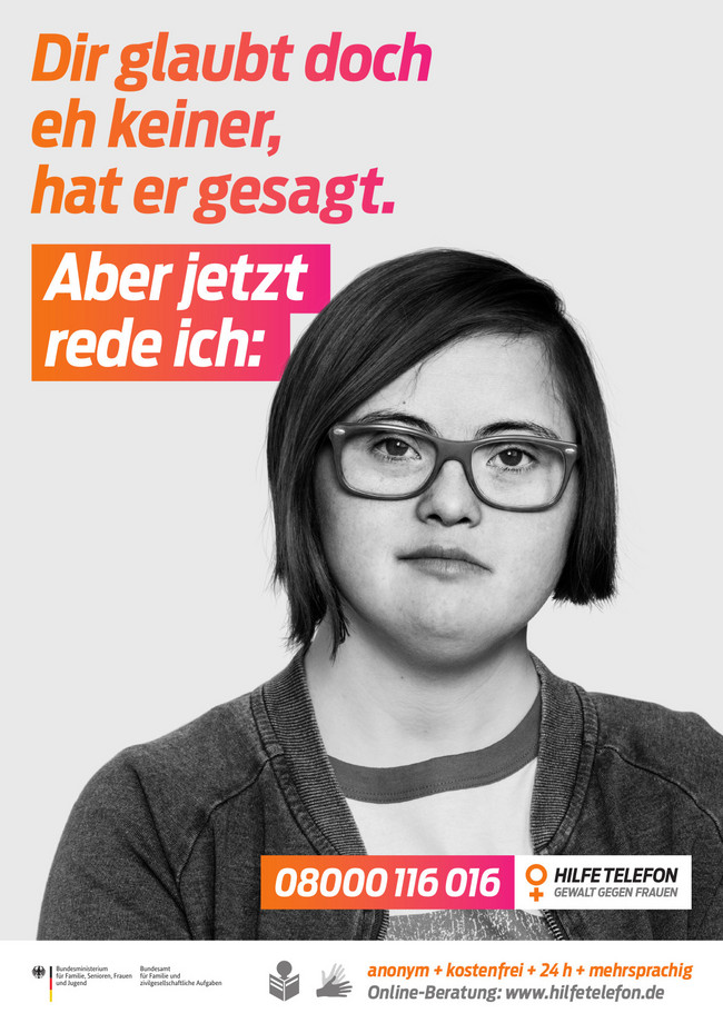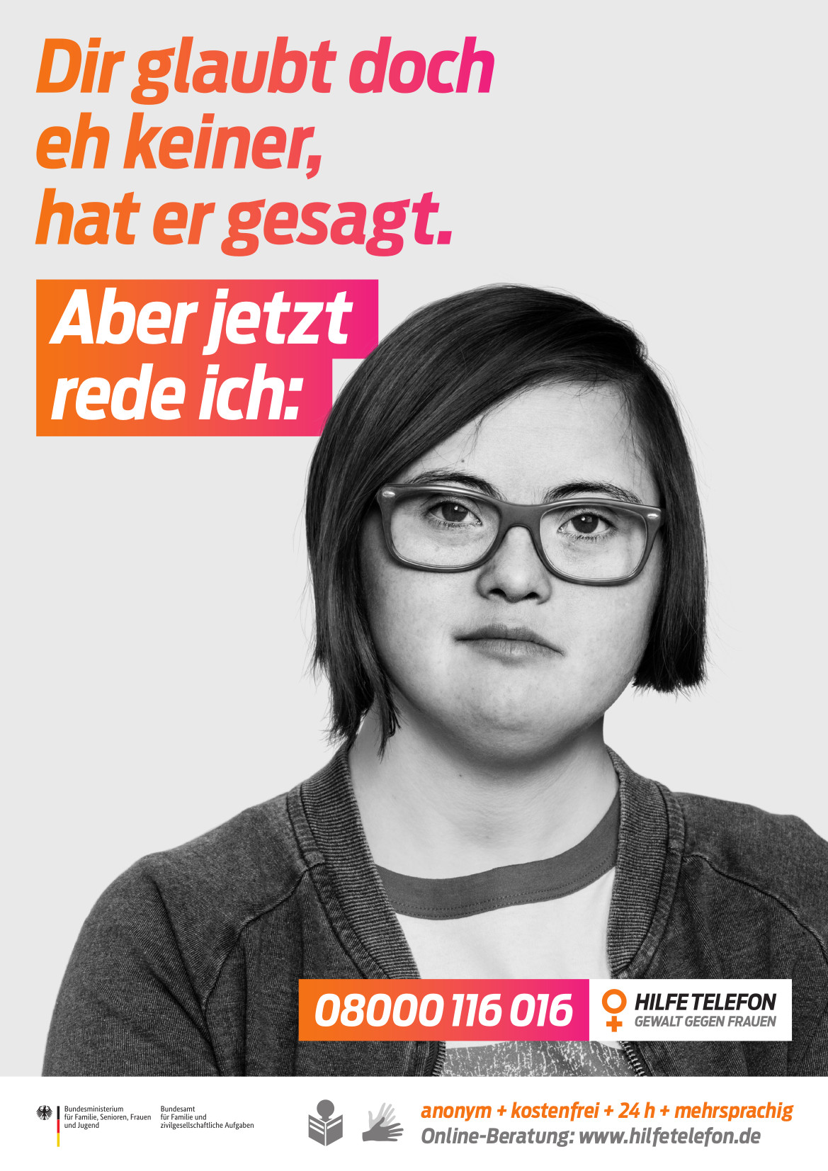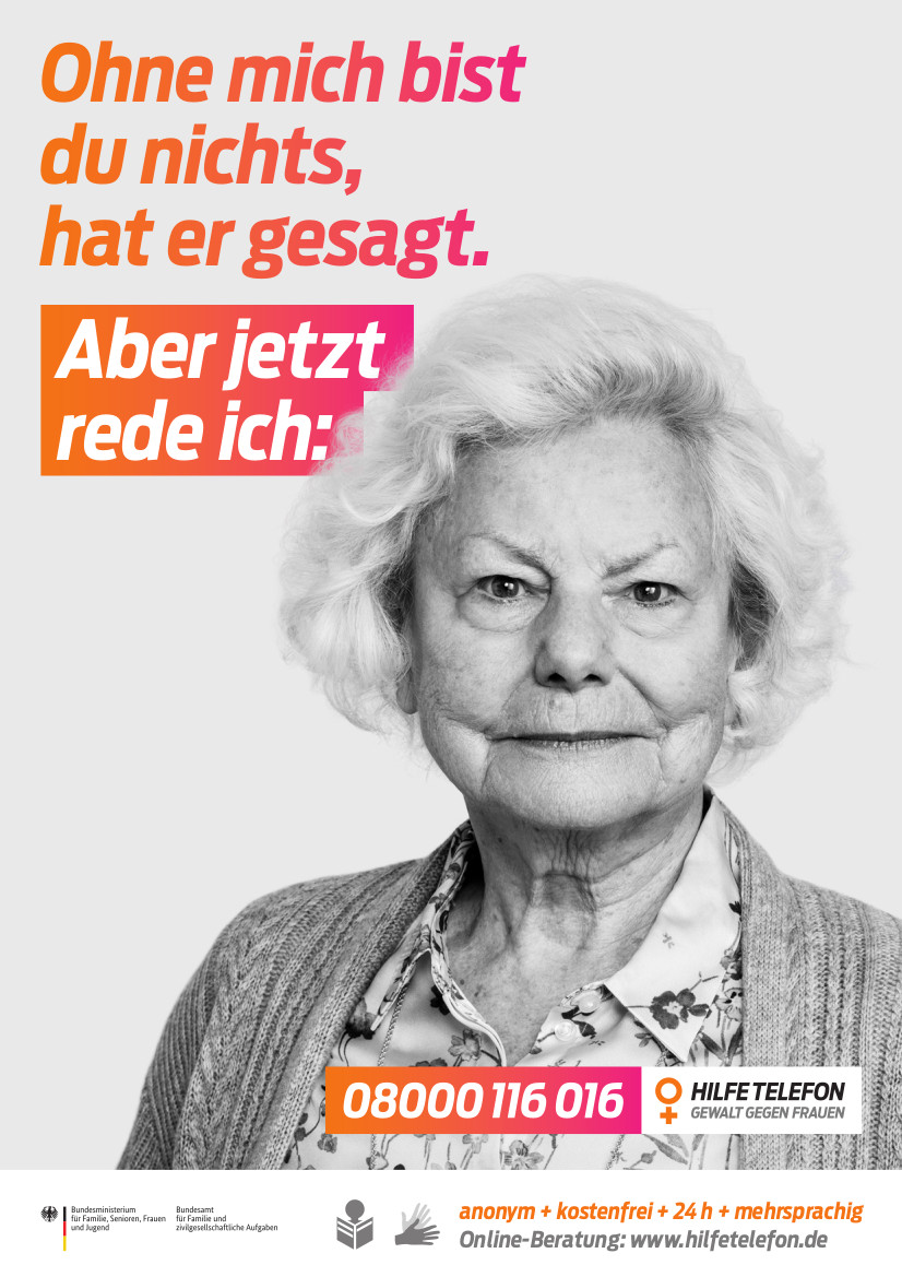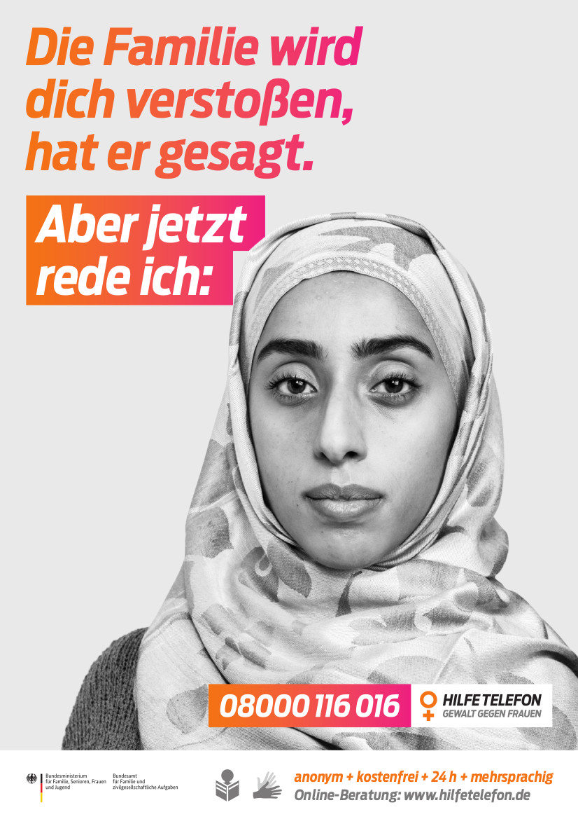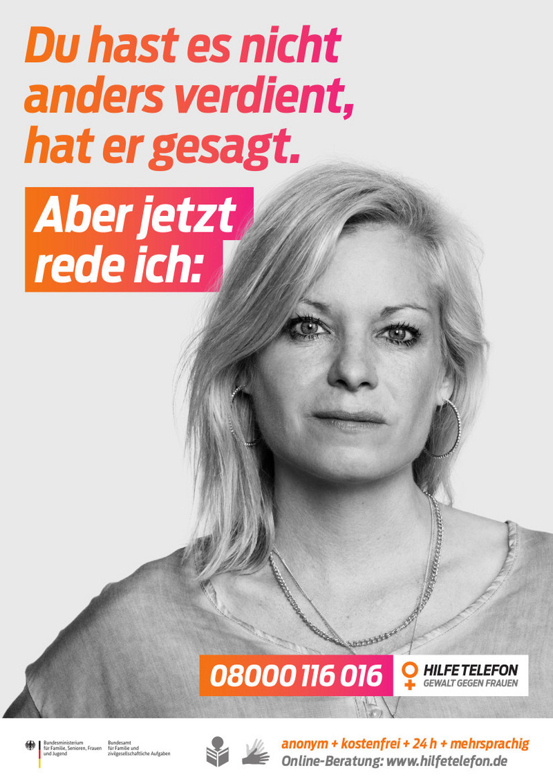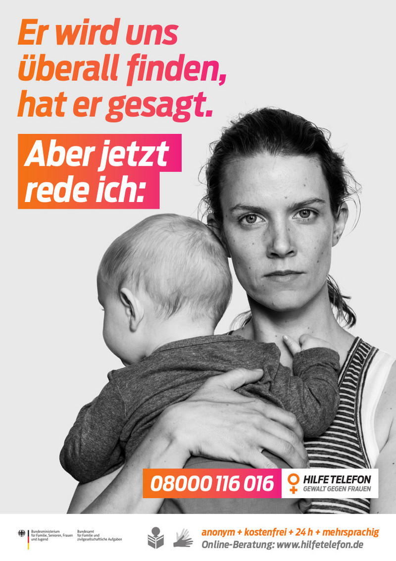Hier setzt das bundesweite Hilfetelefon „Gewalt gegen Frauen“ an: Unter 08000 116 016 und über hilfetelefon.de können sich betroffene Frauen, Menschen aus dem sozialen Umfeld der Betroffenen und Fachkräfte zu allen Formen von Gewalt gegen Frauen beraten lassen.