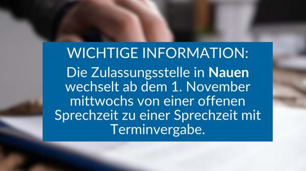 Änderung der Sprechzeiten in der Zulassungsstelle Nauen ab 01. November 2024