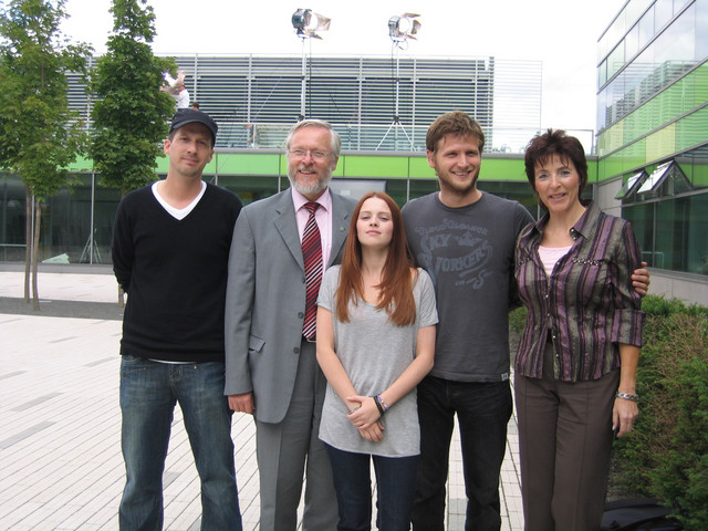 Zu Beginn der Sommerferien zog eine Geschäftigkeit ganz anderer Art im Marie-Curie-Gymnasium (MCG) in Dallgow ein: "Die Welle", ein Roman vom Amerikaner Morton Rhue, ist hier mit Jürgen Vogel in der Hauptrolle neu verfilmt worden. Den letzten DREHTAG Mitte August nutzten Landrat Dr. Burkhard Schröder und Schulleiterin Elke Mohr, die Filmleute exclusiv bei ihrer Arbeit zu beobachten. Regisseur Dennis Gansel und Produzent Christan Becker berichteten anschaulich von den Arbeiten.