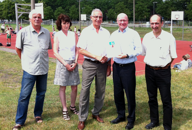 Einen Zuwendungsbescheid aus dem Sportförderungsprogramm des Landkreises Goldener Plan Havelland in Höhe von 43.230 Euro hat Sportdezernent Andreas Ernst  in der vergangenen Woche an den Bürgermeister der Stadt Premnitz, Roy Wallenta, übergeben.