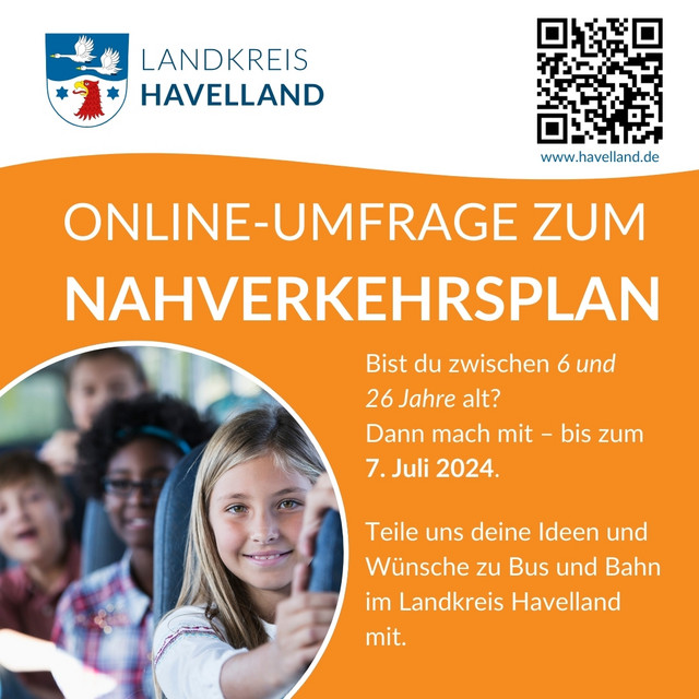 Der Landkreis Havelland erarbeitet aktuell den neuen Nahverkehrsplan und möchte vorab die Meinungen von Kindern und Jugendlichen der Region einholen. Unter dem Motto „Deine Stimme für unsere Mobilität“ startet heute offiziell eine Online-Befragung, um die Bedürfnisse und Anliegen der jungen Generation in Bezug auf den öffentlichen Nahverkehr zu erfassen.
