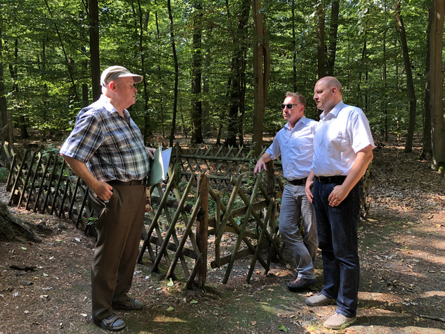 Anschließend besichtigten der Landrat und der Premnitzer Bürgermeister Ralf Tebling gemeinsam mit dem Stadthistoriker das Heidegrab, in dem Elise Friederike von Bornstedt 1812 unter einer alten Eiche beigesetzt wurde.