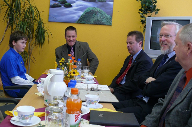 Anschließend gab es im Kinder- und Jugendwohnheim Ketzin bei Kaffe und selbstgebackenem Kuchen ein Gespräch zu Historie, Gegenwart und Perspektive der Einrichtung mit einem kleinen Rundgang zu den Zimmern einiger der jungen Bewohner sowie einen kleinen Abstecher in ein Nebenhaus des Heimes. Hier wohnt eine 18-jährige junge Frau, die im "betreuten Einzelwohnen" auf den Umzug in ihre erste eigene Wohnung vorbereitet wird.