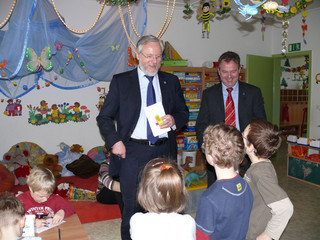 In der Kindertagesstätte Wirbelwind in Falkenrehde wurde der Landrat von den Kindern mit einem Ständchen empfangen. Die Leiterin der Kita, Ursula Scheffler, führte durch die Einrichtung. Im Falkenrehder Dorfgemeinschaftshaus stand die Besichtigung der Bibliothek, des Seniorenraums des Jugendklubs auf dem Programm.