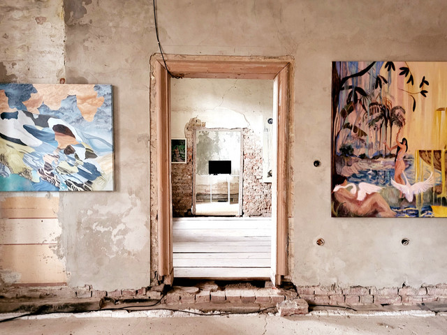 Denn dem Ausstellungsort, einst stolzes und prunkvolles Wahrzeichen des idyllisch gelegenen Ortes Görne im Amt Rhinow, sind die Spuren der Zeit und des Verfalls anzusehen. Doch genau diese morbide Atmosphäre macht den Besuch so spannend. Denn der Betrachter wird nicht nur auf eine Reise in die Vergangenheit mitgenommen und lässt ihn die einstige Schönheit des Schlosses erahnen, sondern es zeigt eindrucksvoll die Kraft der Transformation, denn die Ausstellung läuft parallel zu den umfassenden Sanierungsarbeiten, die der neue Eigentümer, der das Schloss 2019 erwarb, eingeleitet hat.