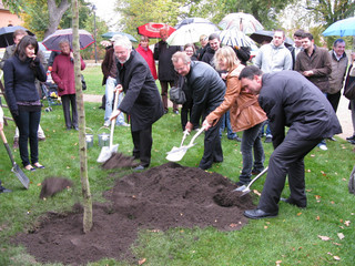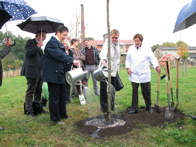Hessische Gymnasiasten nutzen den Tag der Deutschen Einheit für die Pflanzung des neunten Birnbaumes im Deutschen Birnengarten