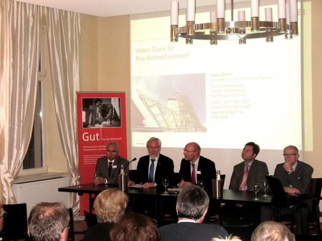 Welche Förderungsmöglichkeiten für Unternehmen im Zuge der Energiestrategie seitens der Investitionsbank des Landes (ILB) und der KfW-Bankengruppe bestehen, fasste Klaus Seidel, Kundenberater der Investitionsbank des Landes Brandenburg, als zweiter Gastreferent an diesem Abend in seinem Vortrag zusammen. Diese reichten von möglichen Förderungen bei Neuanschaffungen von energieeffizienten Maschinen über geplante Sanierungs-maßnahmen bis hin zu zinsgünstigen Darlehens-finanzierungen.