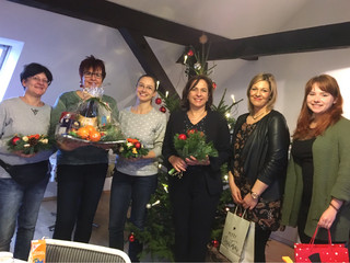 Das Haus ist aktuell mit fünf Erwachsenen und acht Kindern voll belegt und so kam schnell festliche Stimmung auf, als die Überraschungen verteilt wurden. Die Gleichstellungsbeauftragten hatten kleine Präsente vorbereitet. Für die Mütter gab es einen Drogerie-Gutschein sowie Pflegeprodukte und die Kinder bekamen Spielsachen. Den drei Mitarbeiterinnen im Frauenhaus, Catrin Seeger, Jana Reinhardt und Maria Zameski, wurden Adventsgestecke als Dank für ihren Einsatz überreicht.