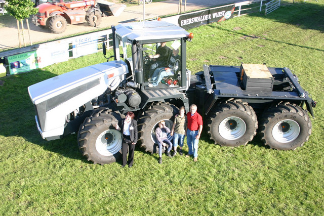 Attraktion war in diesem Jahr ein in Thüringen entwickelter und gebauter Vierachs-Traktor. Er ist der stärkste europäische Radschlepper. Der Traktor kann auch dort eingesetzt werden, wo sonst nur Kettenfahrzeuge eine Chance haben. Der Traktor leistet 600 PS und ist für das Ziehen schwerster Lasten ausgelegt. Der Verbrauch - rund 1000 Liter Diesel pro Arbeitstag.