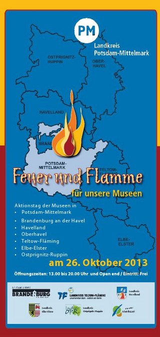 Die Broschüre "Feuer und Flamme für unsere Museen" führt in elf Routen durch die Landkreise Potsdam-Mittelmark, Havelland, Teltow-Fläming, Osthavelland, Ostprignitz-Ruppin, Elbe-Elster und die Stadt Brandenburg. Das Havelland wird in der Route neun vorgestellt.
