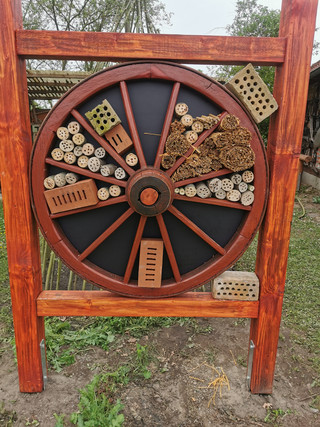 Das Preisgeld investierte die Gruppe in den Bau eines Insektenhotels. Beim Sägen und Hämmern konnten die Kinder handwerkliche Fähigkeiten erlernen und sich kreativ einbringen.