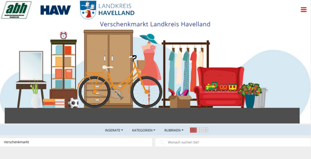 Über die neue Online-Gebrauchtwarenbörse www.verschenkmarkt-landkreis-havelland.dekönnen Bürgerinnen und Bürger im Havelland kostenlos gebrauchte Gegenstände verschenken oder tauschen.