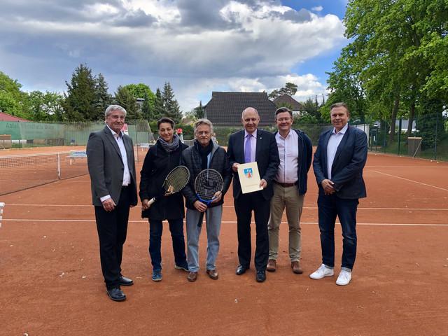 Mit einem Förderbetrag von 6600 Euro unterstützt der Landkreis Havelland den Tennisclub Gelb-Weiß Falkensee e.V. bei der Sanierung seiner Heizungsanlage. Am Montag, den 13. Mai, überreichte Landrat Roger Lewandowski den Vereinsverantwortlichen dazu einen Zuwendungsbescheid.