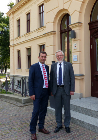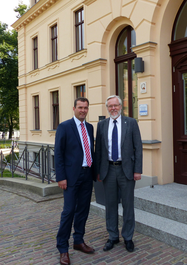 Am 29. Juli  trafen sich die Landräte der Landkreise Havelland und Prignitz Dr. Burkhard Schröder und Torsten Uhe zu einem Arbeitsgespräch auf Schloss Ribbeck. Landrat Uhe nutzte die Gelegenheit, seinem Amtskollegen nachträglich noch persönlich zum 65. Geburtstag zu gratulieren. Landrat Dr. Schröder ist der dienstälteste Landrat im Land Brandenburg.