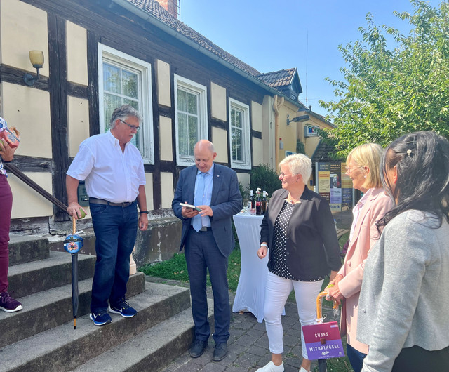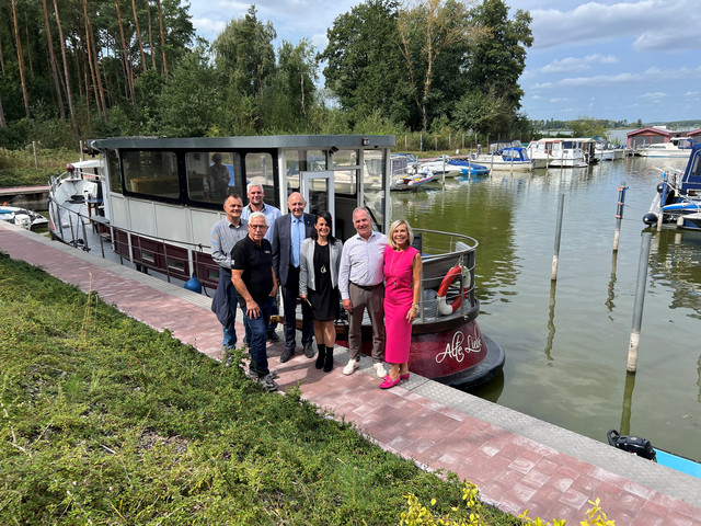 Am 22.08.2024 geht es für den Landrat weiter ins Amt Nennhausen, wo gleich mehrere Highlights auf dem Programm stehen. Die Kirche in Stechow, die schon seit dem 13. Jahrhundert über die Landschaft wacht und liebevoll vom Förderverein gepflegt wird. Danach folgt ein Abstecher zum Yachthafen nach Ferchesar, bevor der Landrat das „Alte Gärtnerhaus“ von Nennhausen besucht. Dieses charmante Fachwerkhaus aus dem Jahr 1719 erzählt Geschichten aus der Romantik und von Baron Friedrich de la Motte-Fouqué. Betreut wird das Gebäude „Altes Gärtnerhaus“ von dem Kulturverein Nennhausen e.V., der sich für den Erhalt und die Sanierung des Fachwerkhauses, den Erhalt der Orts- und Literaturgeschichte sowie der Wiederbelebung des Ortszentrums einsetzt. Der Verein organisiert z. B. regelmäßig im Sommer Sonntagskaffee und selbstgebackenen Kuchen sowie Schlossparkführungen und Ausstellungen in Zusammenarbeit mit anderen Vereinen.
