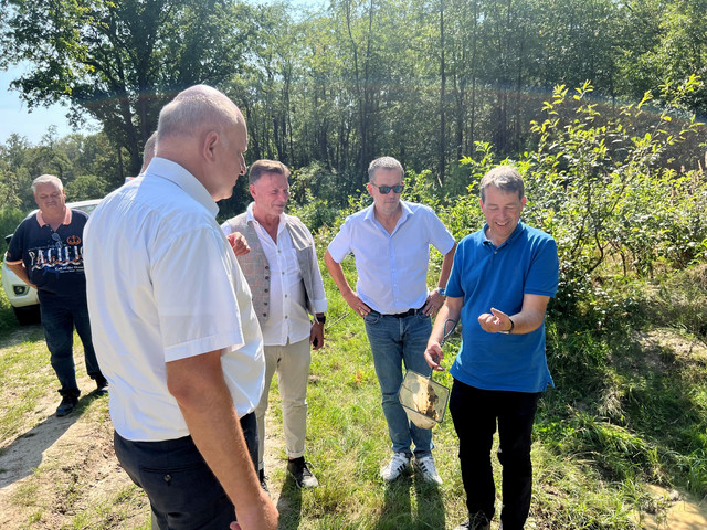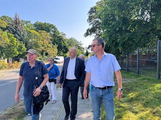Weiter geht’s zur Interessengemeinschaft Geschichte Dallgow-Döberitz, die sich mit Hingabe um das Heimatarchiv kümmert, damit die Geschichten aus vergangenen Zeiten nicht in den Nebeln des Vergessens verschwinden. Nach einem informativen Rundgang durch den Ortskern von Dallgow-Döberitz, geleitet von den engagierten Herren Hans-Heinrich Rathjen und Klaus Michels von der Interessengemeinschaft Geschichte Dallgow-Döberitz, taucht der Landrat in die Sielmanns Naturlandschaft Döberitzer Heide ein – eine Landschaft, die mit einer Größe von vergleichsweise rd. 5.000 Fußballfeldern und fast 1.000 geschützten Tierarten beeindruckt. Auf dem Gelände gibt es rund 6.600 verschieden Tier-, Pilz und Pflanzenarten.