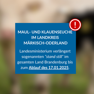 Die Eilverordnung zum Schutz vor der Verschleppung der Maul- und Klauenseuche (MKS) wurde heute nochmals für das gesamte Land Brandenburg durch das Ministerium für Land- und Ernährungswirtschaft, Umwelt und Verbraucherschutz (MLEUV) um zwei Tage verlängert.