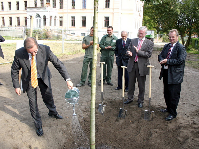 "Es ist eine schöne Idee, die Werner Bader mit diesem Birnbaum hatte", stellte Landrat Dr. Burkhard Schröder beim festlichen Akt am Samstag fest. Der ehemalige Leiter der "Deutschen Welle" Bader, der sich seit Jahren der märkischen Geschichte verbunden fühlt, gab den Anstoß zum Birnengarten, der als gesamtdeutsches Symbol für ein gesamtdeutsches Gedicht, das von der Nordsee bis zu den Alpen bekannt ist, stehen soll. "Dadurch wird der märkische Ort Ribbeck weiter von sich reden machen und Besucher anziehen", zeigte sich auch Ministerpräsident Matthias Platzeck überzeugt, dem die Ehre zuteil wurde, als brandenburgischer und damit auch märkischer Landesvater den ersten Baum in Ribbeck zu pflanzen.