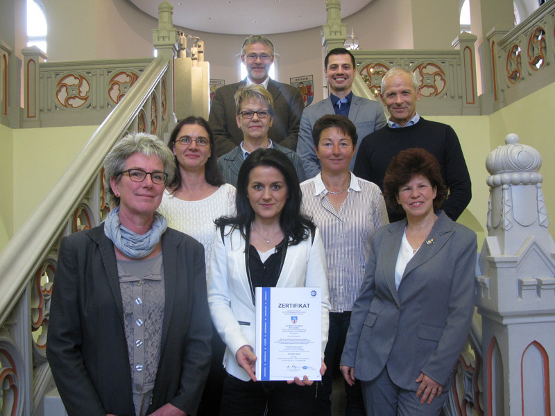 Im Sinne eines „Pilotprojektes“ hat Landrat Dr. Burkhard Schröder das noch neue Qualitätsmanagement nach der gängigen Zertifizierungsnorm ISO 9001:2008 begutachten lassen. Eine unabhängige Auditorin der TÜV Süd Akademie untersuchte am 17. und 18. November die Rechnungs- und Gemeindeprüfung. Nachdem die Prüfung mit Erfolg bestanden wurde, erhielten die Mitarbeiterinnen und Mitarbeiter am 25. November das entsprechende Zertifikat. „Im Audit wurde deutlich, dass der Qualitätsmanagement-Gedanke bereits seit Jahren gelebt wird und alle Beteiligten mit Engagement an der Weiterentwicklung arbeiten“, heißt es im Bericht.