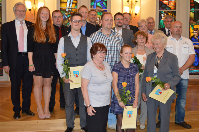 Für ihr ehrenamtliches Engagement beim TSV Falkensee wurde die 23-jährige Sophie Spiekermann am Dienstagabend mit dem Ehrenamtspreis des Landkreises ausgezeichnet. Landrat Dr. Burkhard Schröder hatte die 18 Nominierten zu einer Festveranstaltung ins Rathaus nach Falkensee eingeladen. Seit 5 Jahren ehrt der Landkreis Havelland Bürger, die sich ehrenamtlich besonders hervorgetan haben und sich zum Wohle der Gemeinschaft sehr engagieren. Nachdem die Vorschläge durch Bürgermeister, Dezernenten und Kreisverbänden eingegangen waren, entschied die Jury sich nach einem Punktesystem für die Gewinner des Ehrenamtspreises, obwohl die Leistungen der Ehrenamtlichen nicht leicht vergleichbar waren. So gab es nach Auszählung der Stimmen auch zwei 2. Plätze und zwei 3. Plätze.