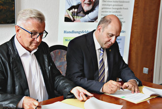 Mit der heutigen Unterzeichnung einer Vereinbarung durch den Landrat Roger Lewandowski und den Geschäftsführer der Kommunalen Wohnungsbaugesellschaft Rathenow (KWR), Hartmut Fellenberg, steht der Realisierung eines der bisher größten Projekte im Demografie-Projekt Havelland, der Errichtung einer barrierearmen und technikunterstützten Musterwohnung, nichts mehr im Wege.
