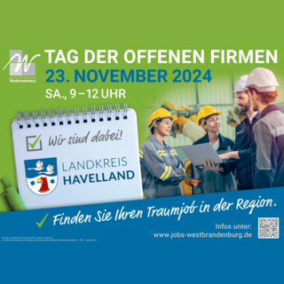 Auch der Landkreis Havelland, der Teil der Wirtschaftsregion Westbrandenburg ist, nimmt am Tag der offenen Firmen teil und stellt sich Bürgerinnen und Bürgern vor, die auch der Suche nach einer Ausbildung, einem Studienplatz oder einem Job sind. Interessierte erhalten Informationen über freie Stellen, Aufgabenbereiche der Kreisverwaltung und Bewerbungsmöglichkeiten. Auch präsentiert sich der Landkreis Havelland als Ausbildungsbehörde und informiert über die verschiedenen Ausbildungs- und Studienmöglichkeiten in der Kreisverwaltung. Absolventinnen und Absolventen, die sich bewerben möchten, können Ihre Bewerbungsunterlagen gerne direkt mitbringen, erhalten dabei auch Tipps für Vorstellungsgespräche, Informationen zu Praktika und einem Werksstudium in der Kreisverwaltung.