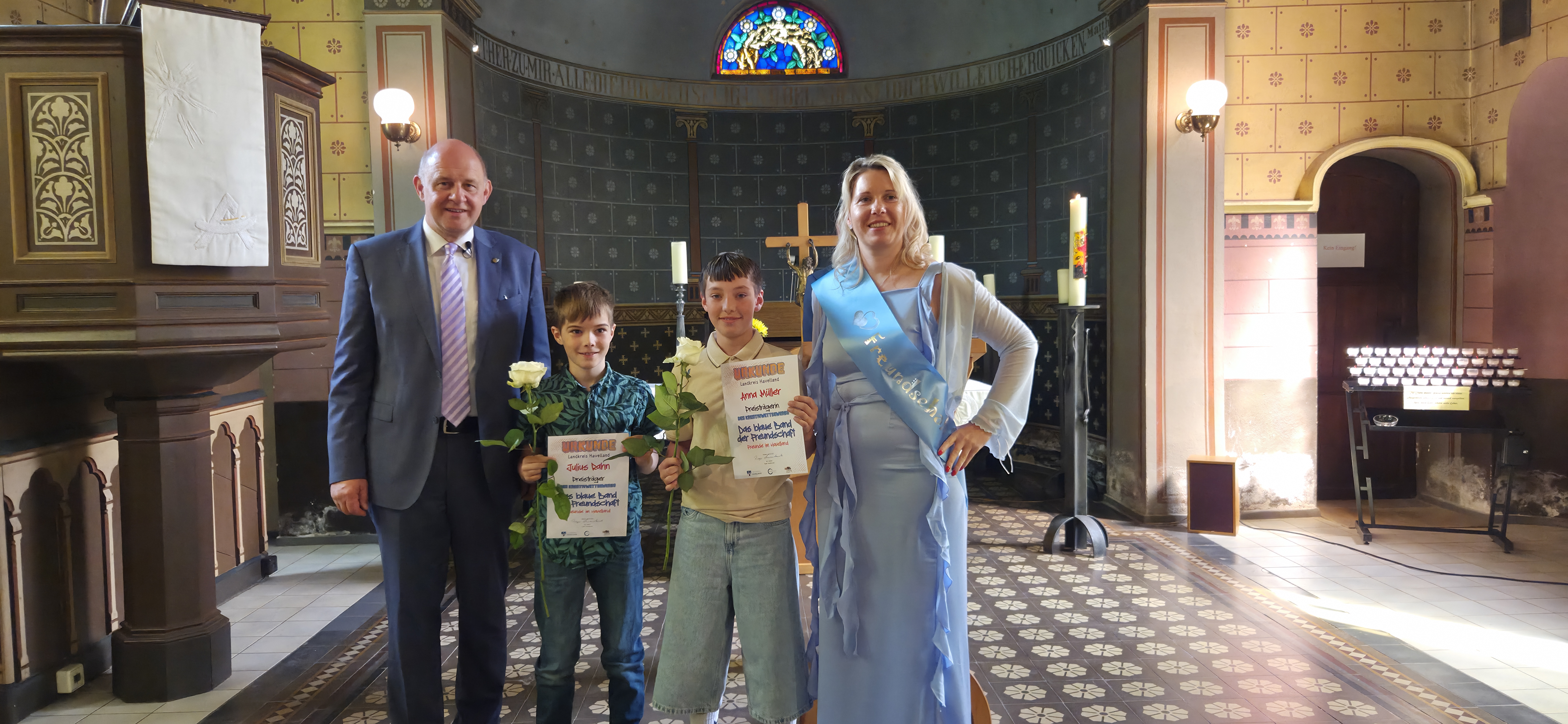 Preisverleihung des 12. Kreativwettbewerbs Das blaue Band der Freundschaft - Freunde im Havelland Die Kirche in Ribbeck wurde am 18. Mai zum Zentrum junger Kreativität: Dort fand die feierliche Preisv