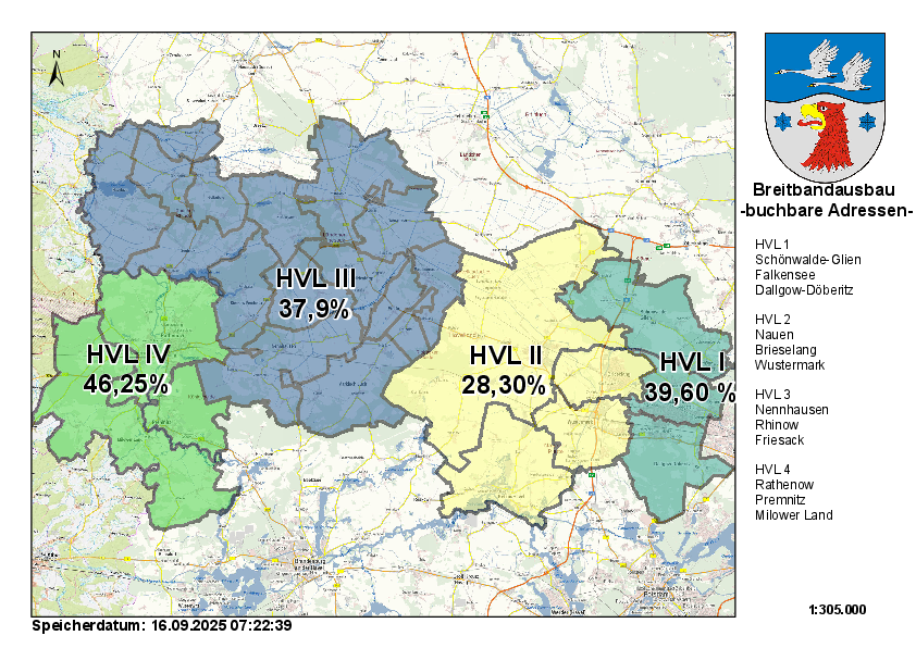 Durch die beauftragten Konzessionsnehmer ´Deutsche Telekom GmbH´ und ´e.discom Telekommunikation GmbH´ werden in den 4 Projektgebieten, nach jetzigem Kenntnisstand, gut 300 km Tiefbau durchgeführt und knapp 2.100 km Glasfaserkabel eingebracht. Laut dem jetzigen Stand der Planung werden somit gut 13.000 unterversorgte Adresspunkte zukünftig mit Glasfaser (FTTH / B) versorgt. Darunter befinden sich 59 Schulen, 294 Gewerbetreibende und 2 Krankenhäuser im Landkreis Havelland. Als unterversorgt gelten Anschlüsse mit einer Downloadrate kleiner gleich 30 Mbit/s.