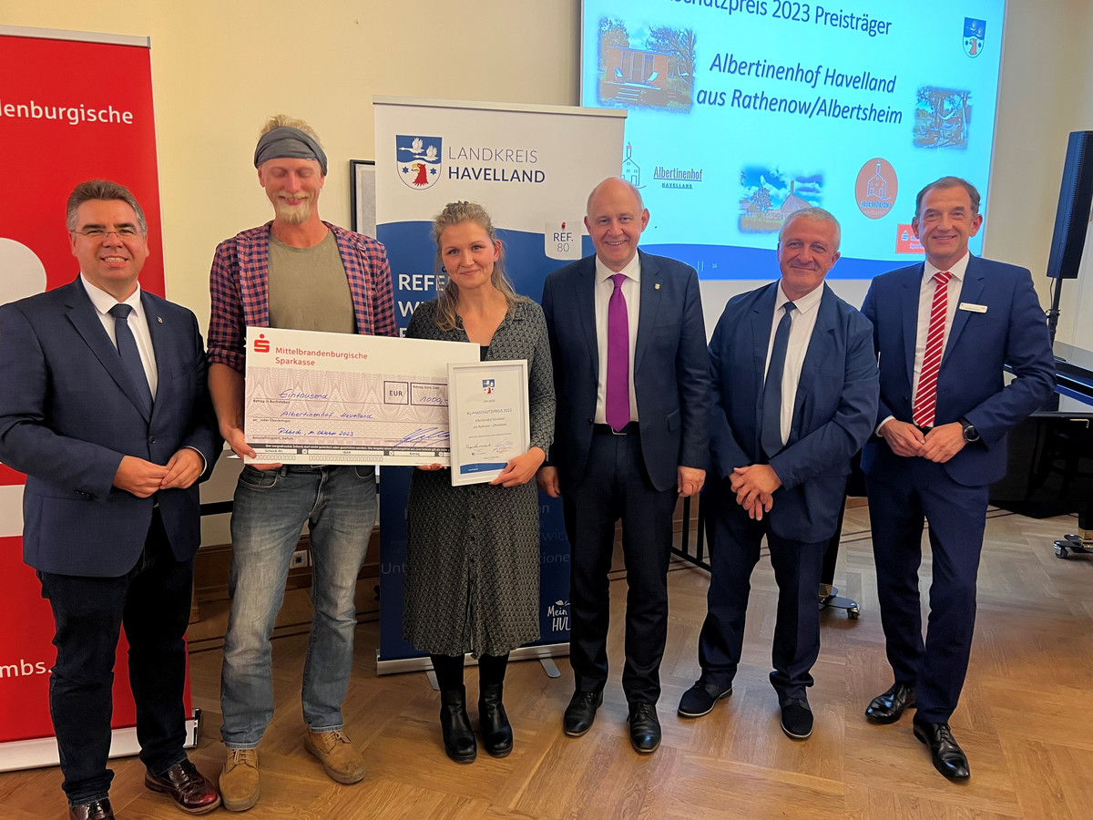 Hinten: v.l. Jörg Schönberg (stellv. Kreistagsvors.), Bosse Johannison (Albertinenhof), Gerart van den Tillart (Sterntal gGmbH), Roger Lewandowski (Landrat), Karsten Wagner (MBS)